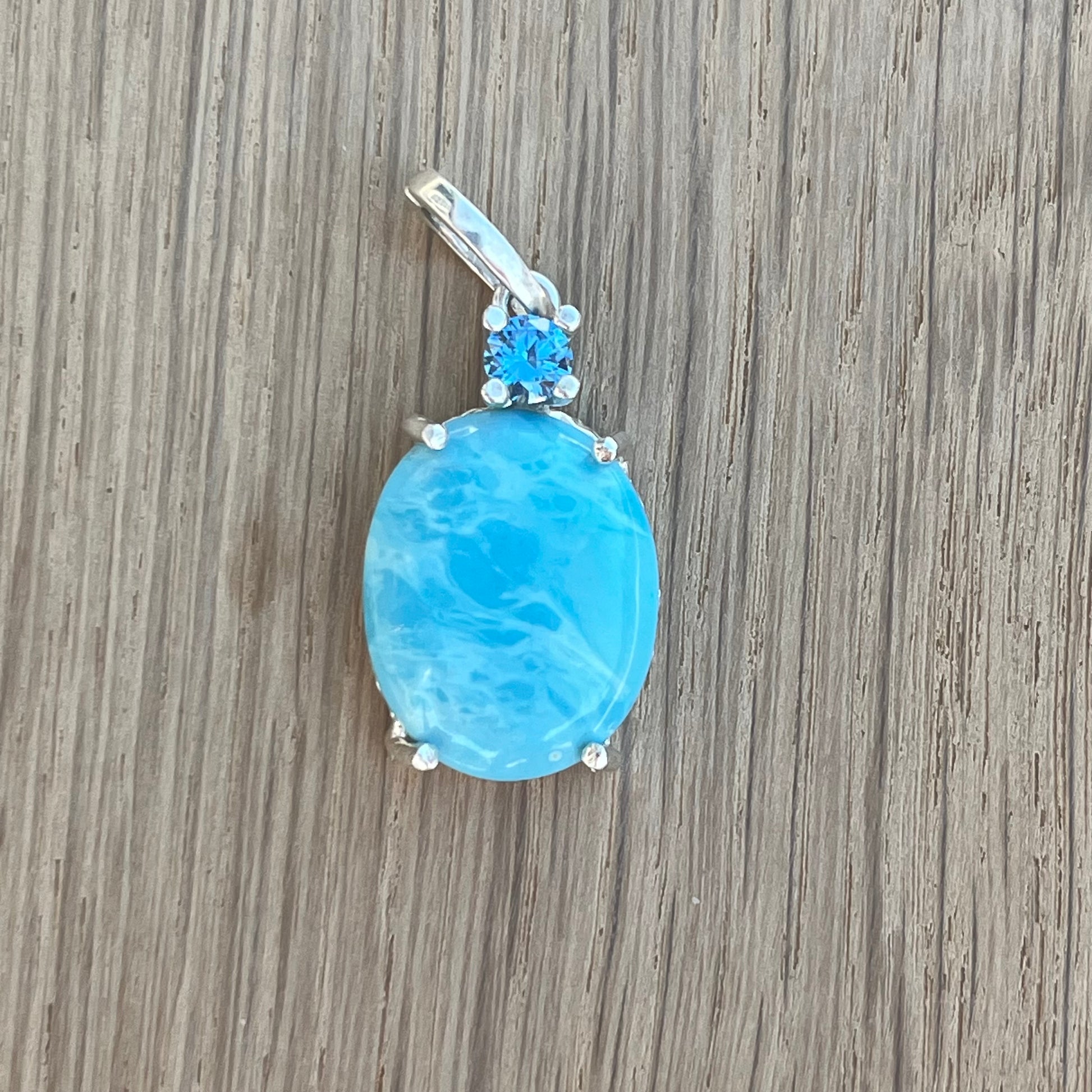Stort og kult anheng med turkis og en syntetisk blå zirkonia. Kult på et langt kjede med eller uten annet stæsj.