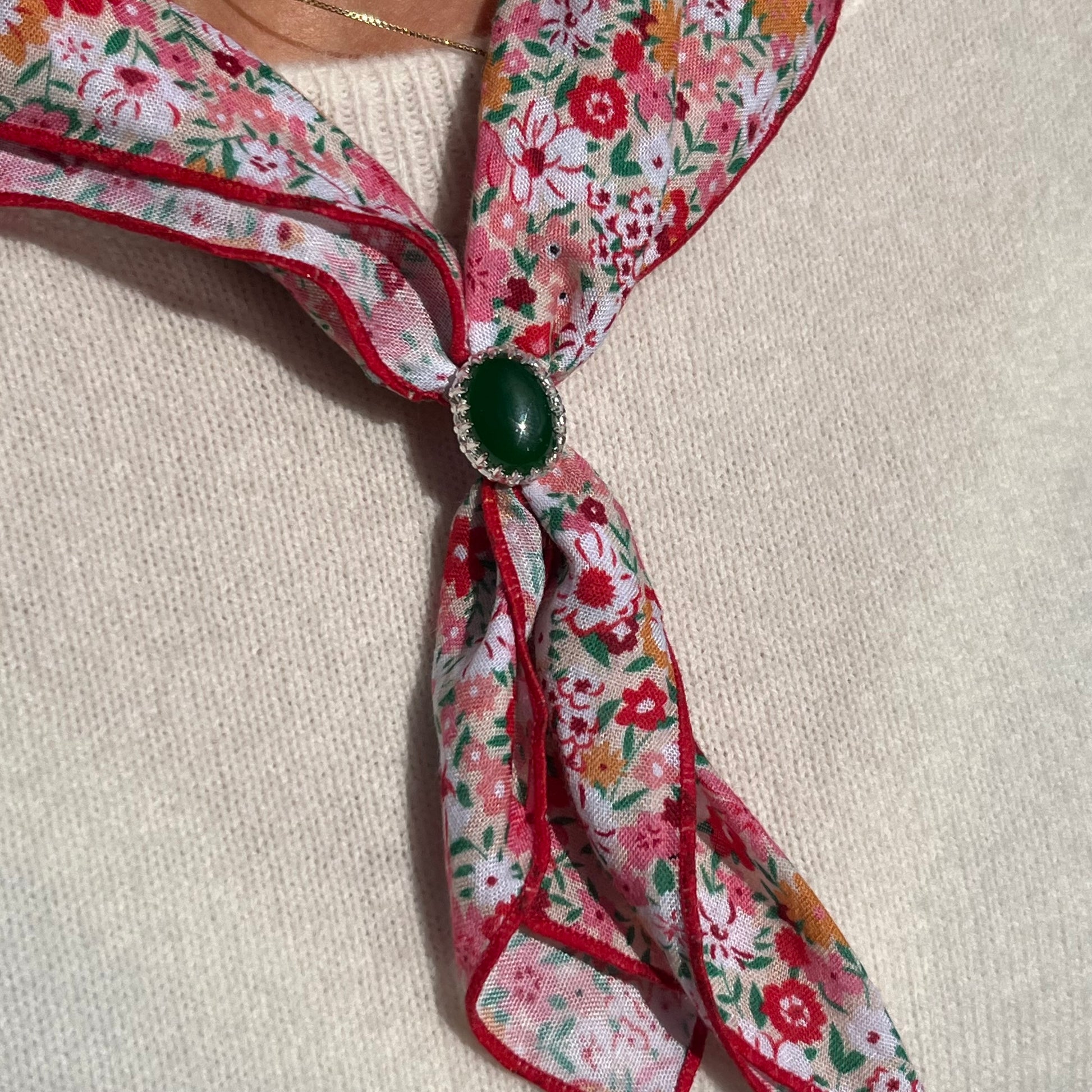 Her får du tidenes kuleste tilbehør. Skjerf med en brosje som er laget for hånd i 925 sølv med en grønn jade. Deilig i halsen og superkult tilbehør.