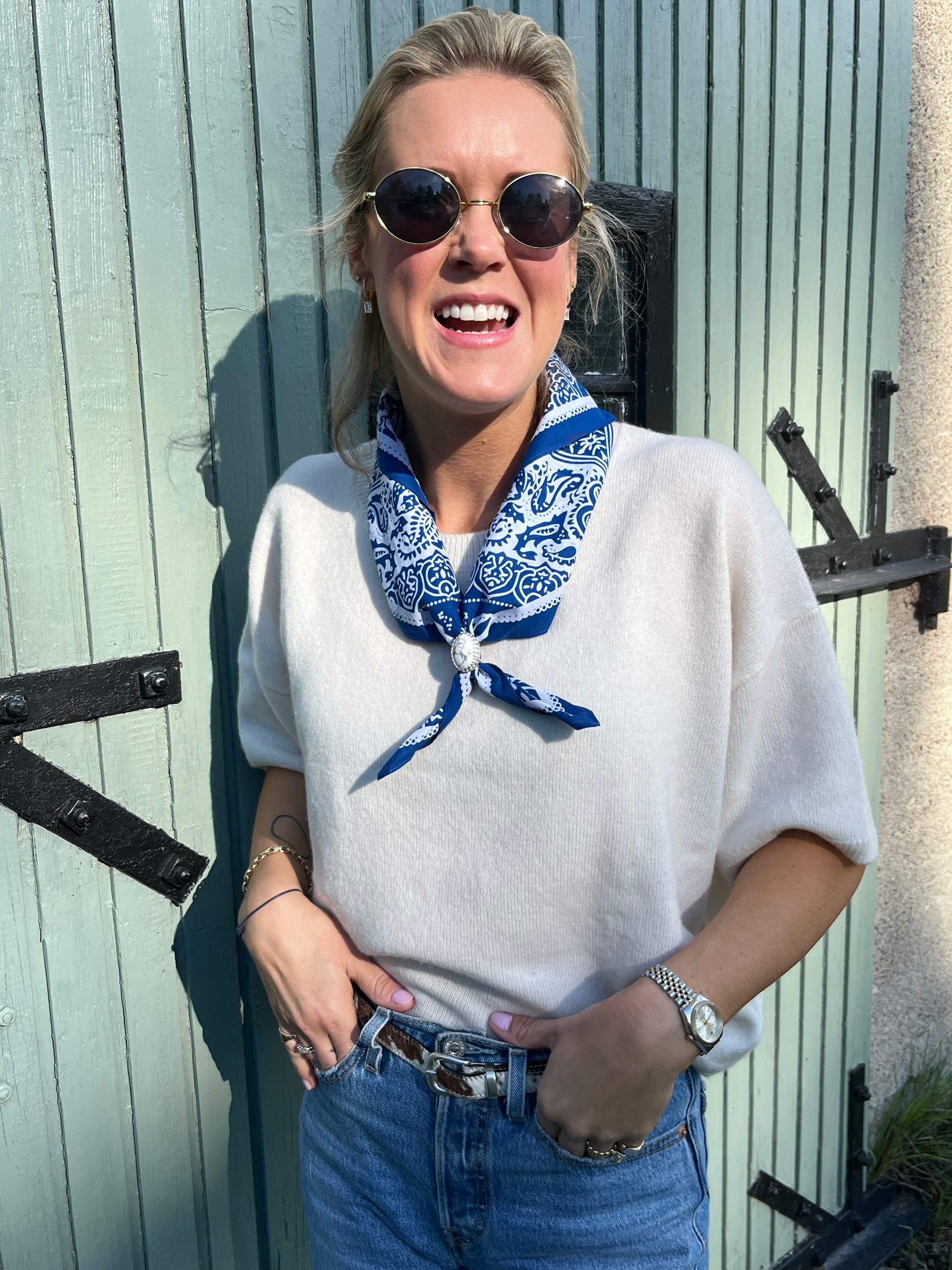Her får du tidenes kuleste tilbehør. Skjerf med en brosje som er laget for hånd i 925 sølv her på verkstedet med en howlitt. Deilig i halsen og superkult tilbehør.