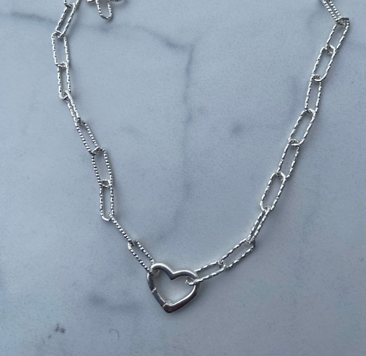 Dette kule rektangulære sølvkjedet har filte ledd så det får en diamant feeling. Superfint alene eller med andre kjeder. Foran er en hjertelås så du lett kan henge av og på anheng. Så om du ønsker et klassisk kjede eller med masse stæsj, kan du lett forandre det selv.