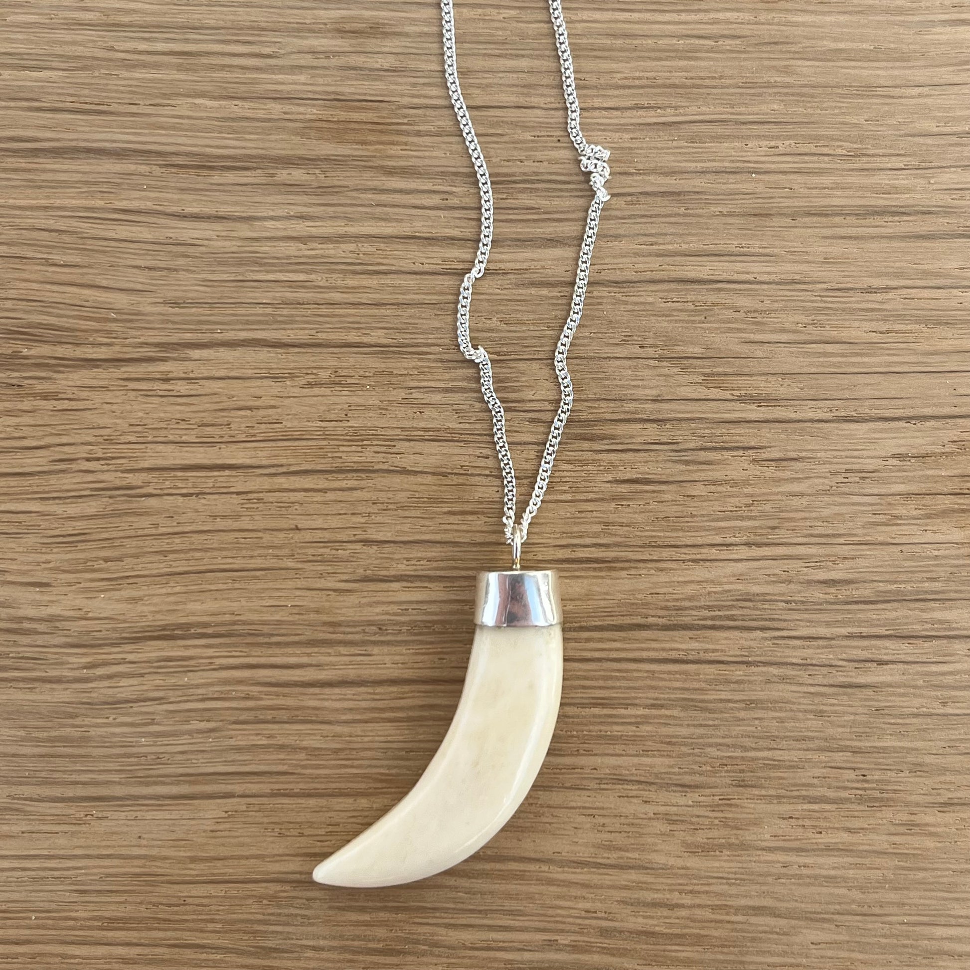 Superkult 60 cm langt kjede i 925 sølv med en tann. Gøy alene eller med annet stæsj. Passer perfekt på sommeren til alt av tøy.