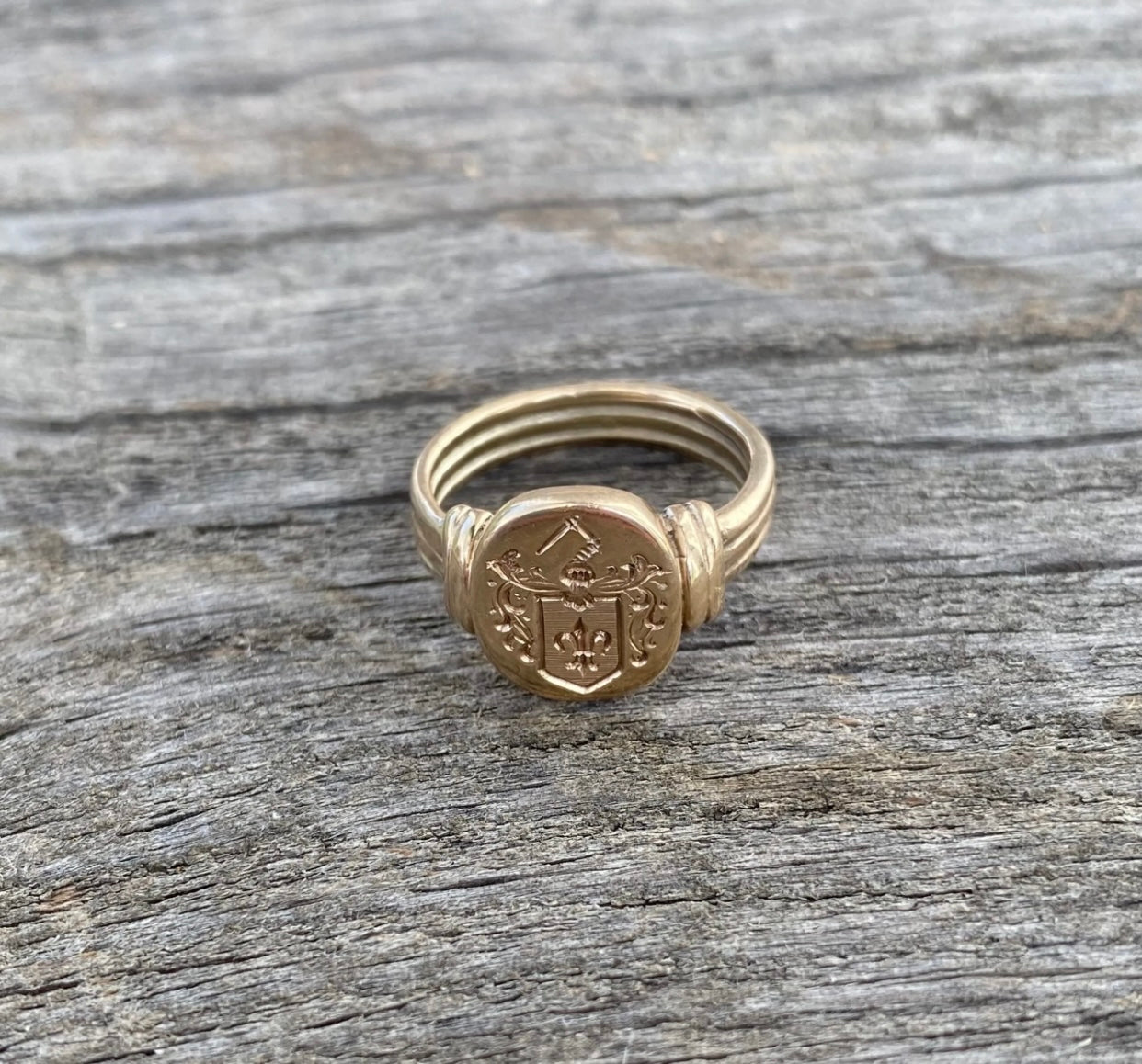Massiv og kul signetring med Lorange familievåpen håndgravet. Her kan du få gravert ned akkurat det du måtte ønske. Ringen er litt annerledes enn de klassiske signetringene.