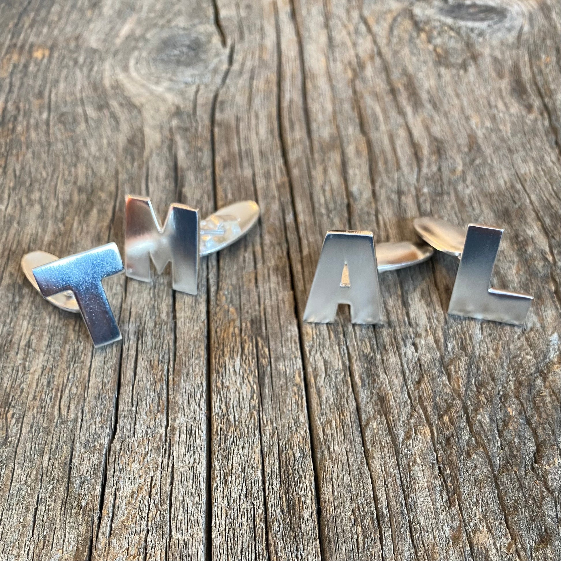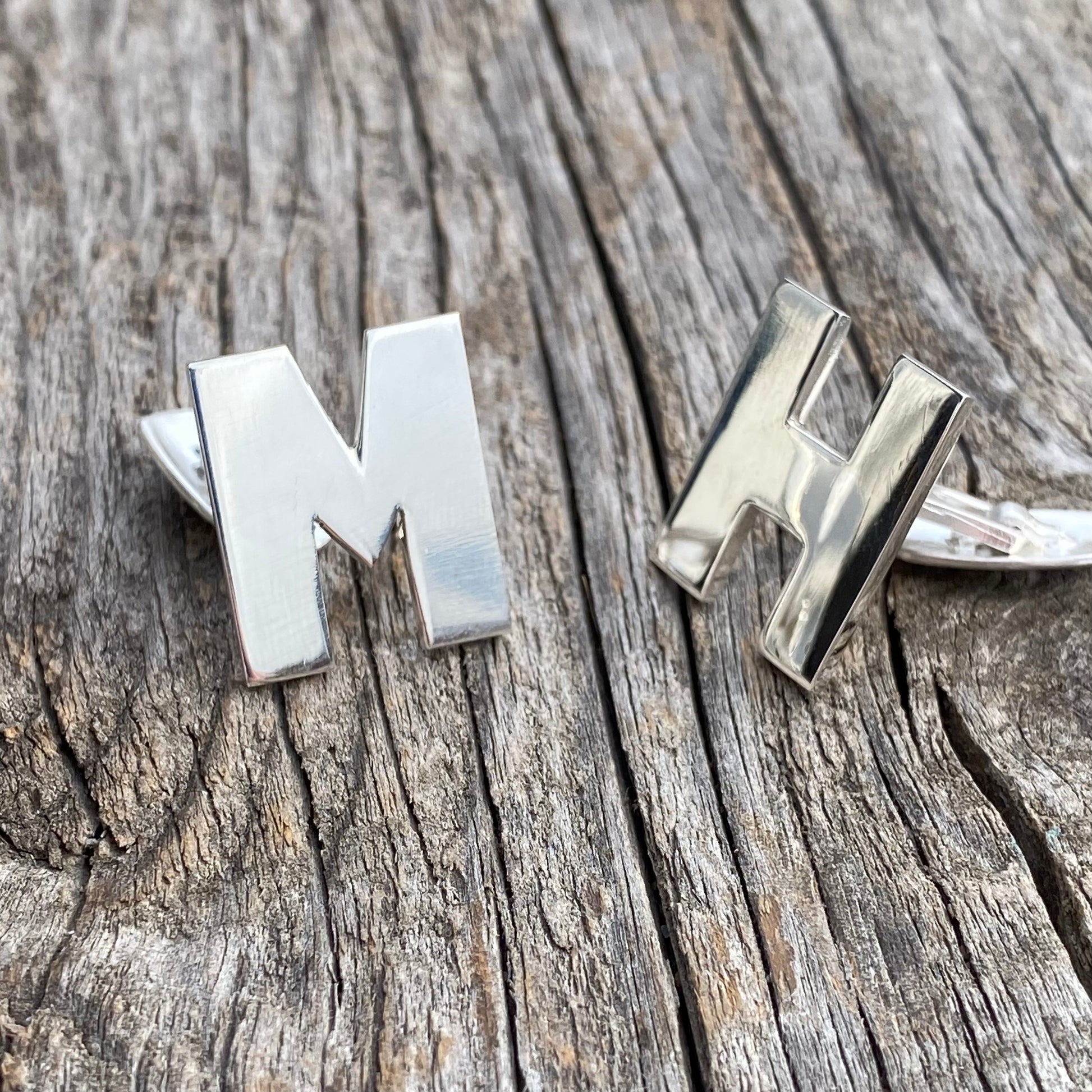 Superkule mansjettknapper til gutta håndlaget i 925 sølv. Lages på bestilling med dine bokstaver. De er 2 mm tykke og 1,7 cm høye ca. Men her kan du være med å bestemme.