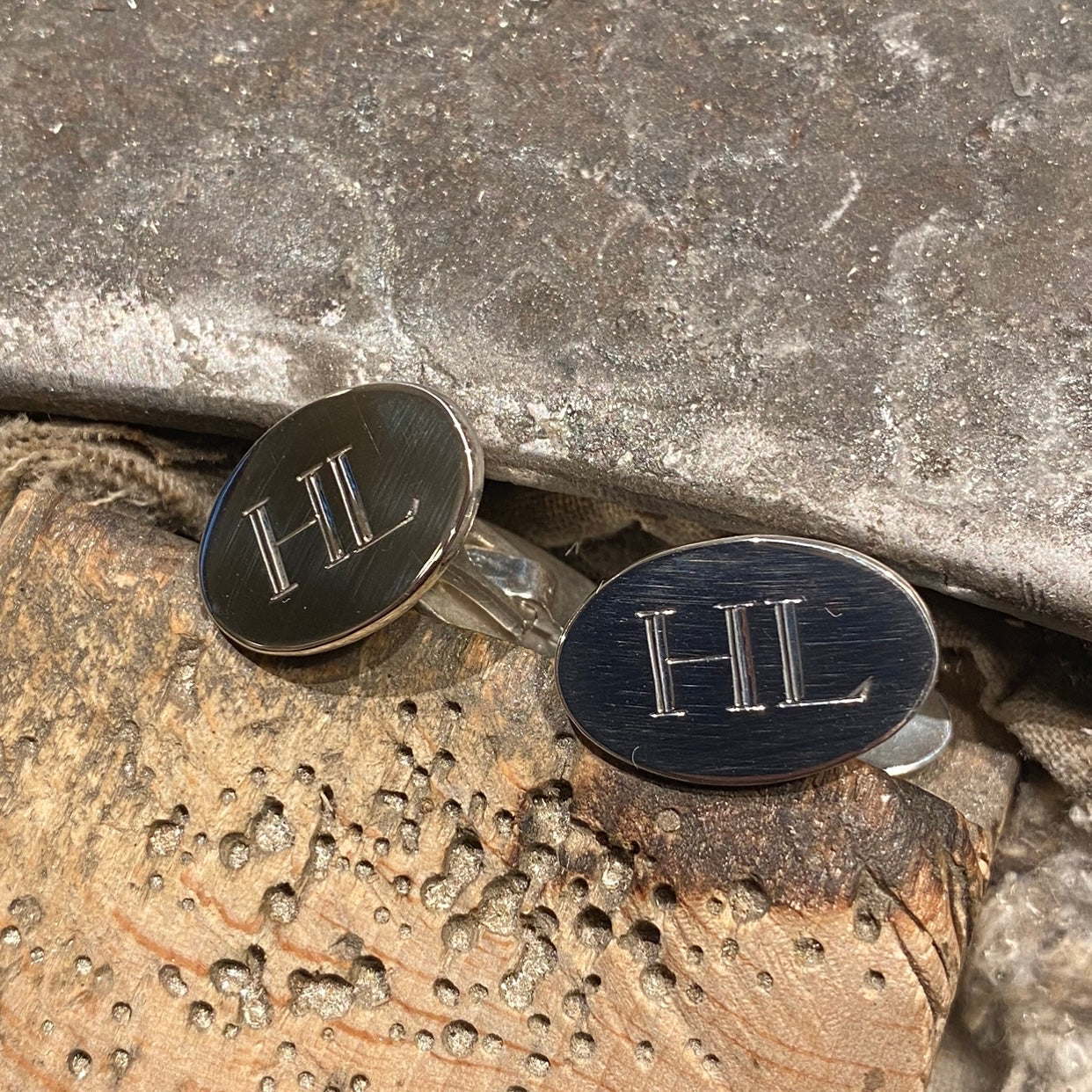 En Lorange klassiker. Disse lages for hånd her på verkstedet i rektangulær, rund eller oval form. Håndgraverte initialer. Lages på bestilling i sølv eller i gull. Overflaten er børstet. Men kan også lages med polert overflate. Ta kontakt før bestilling om du lurer på noe.