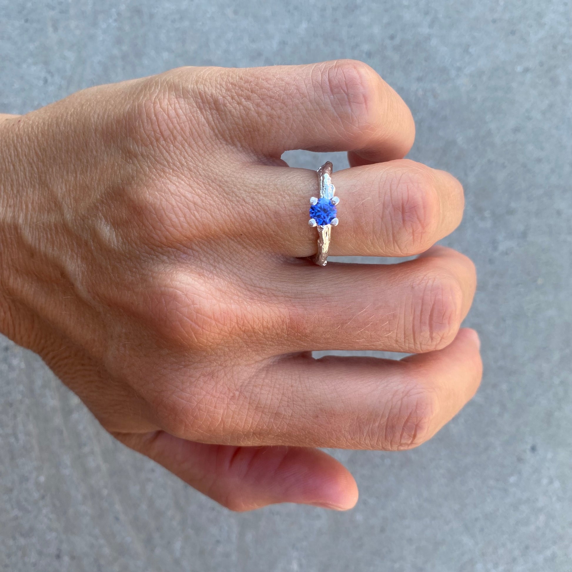 Organic er superfin og ugjevn i fasongen. Her med blå zirkonia. Kul alene eller i STACK med andre ringer i sølv og gull. Laget på verkstedet i 925 sølv.