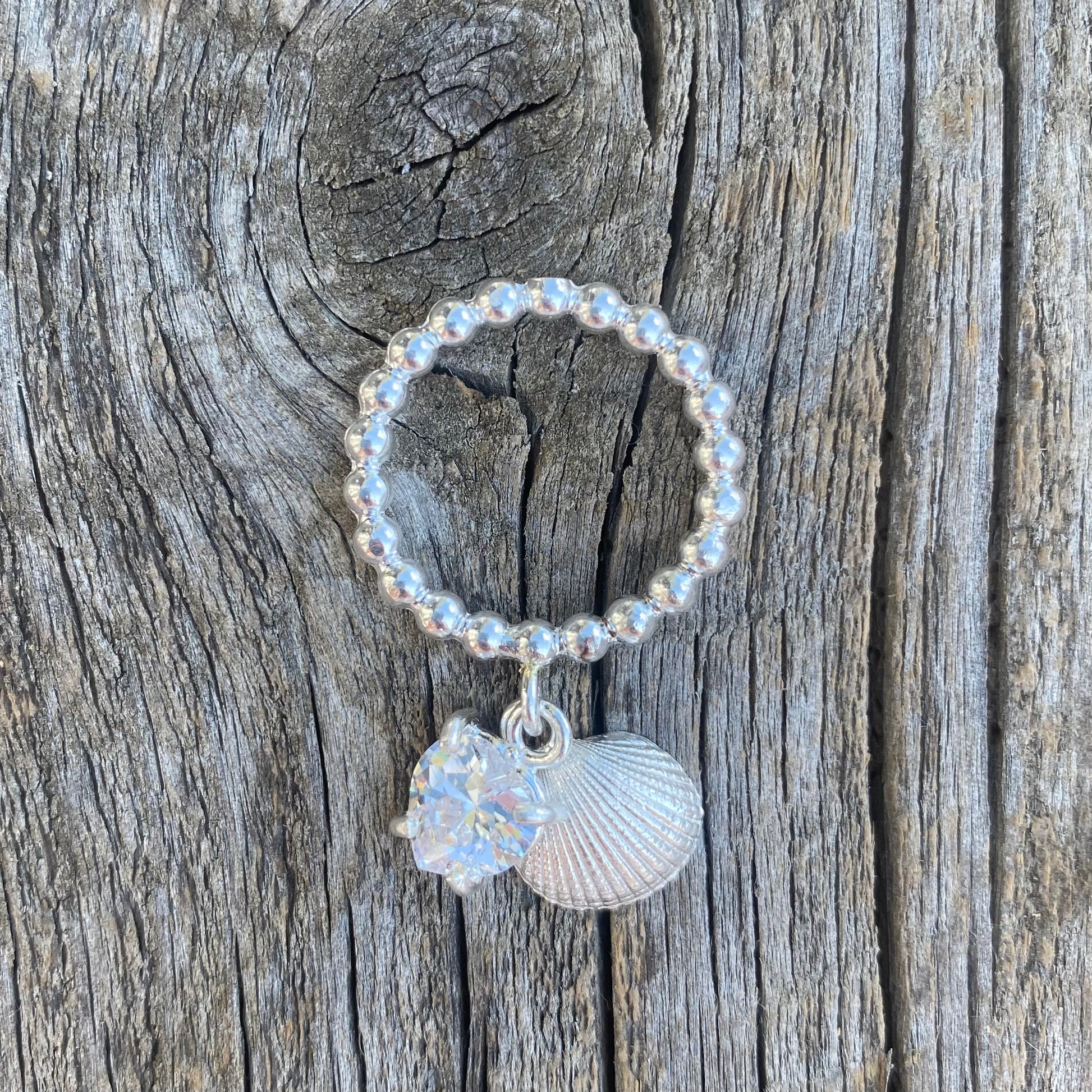 Superfin boblering med skjell og hjerte zirkonia. Laget i 925 sølv her på verkstedet i Lommedalen. Skjellet er laget modell av etter et skjell jeg fant i Røssesundet på Hvasser.