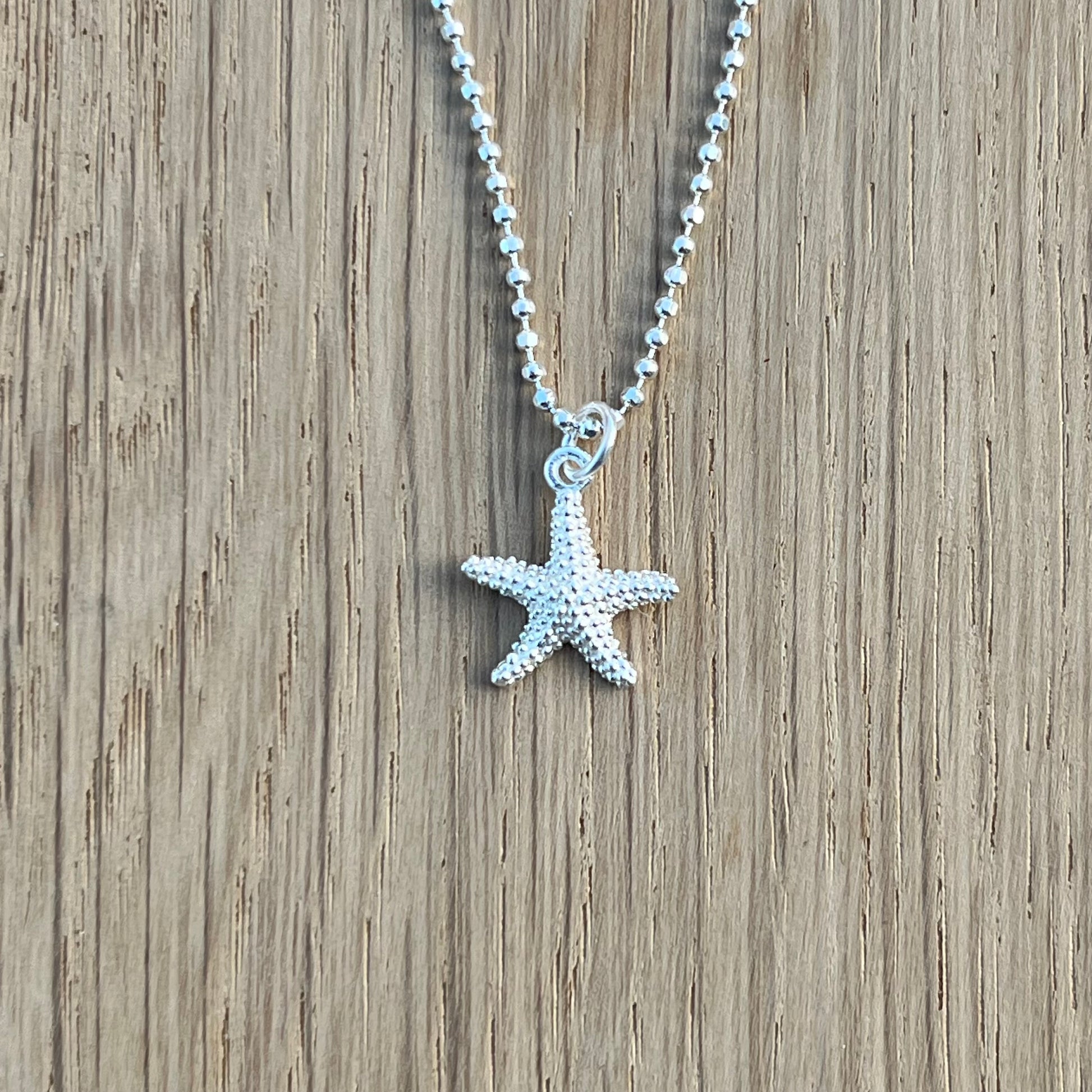 Perfekt sommersmykke. Superfint kjede med en sjøstjerne på. Laget på verkstedet i 925 sølv.