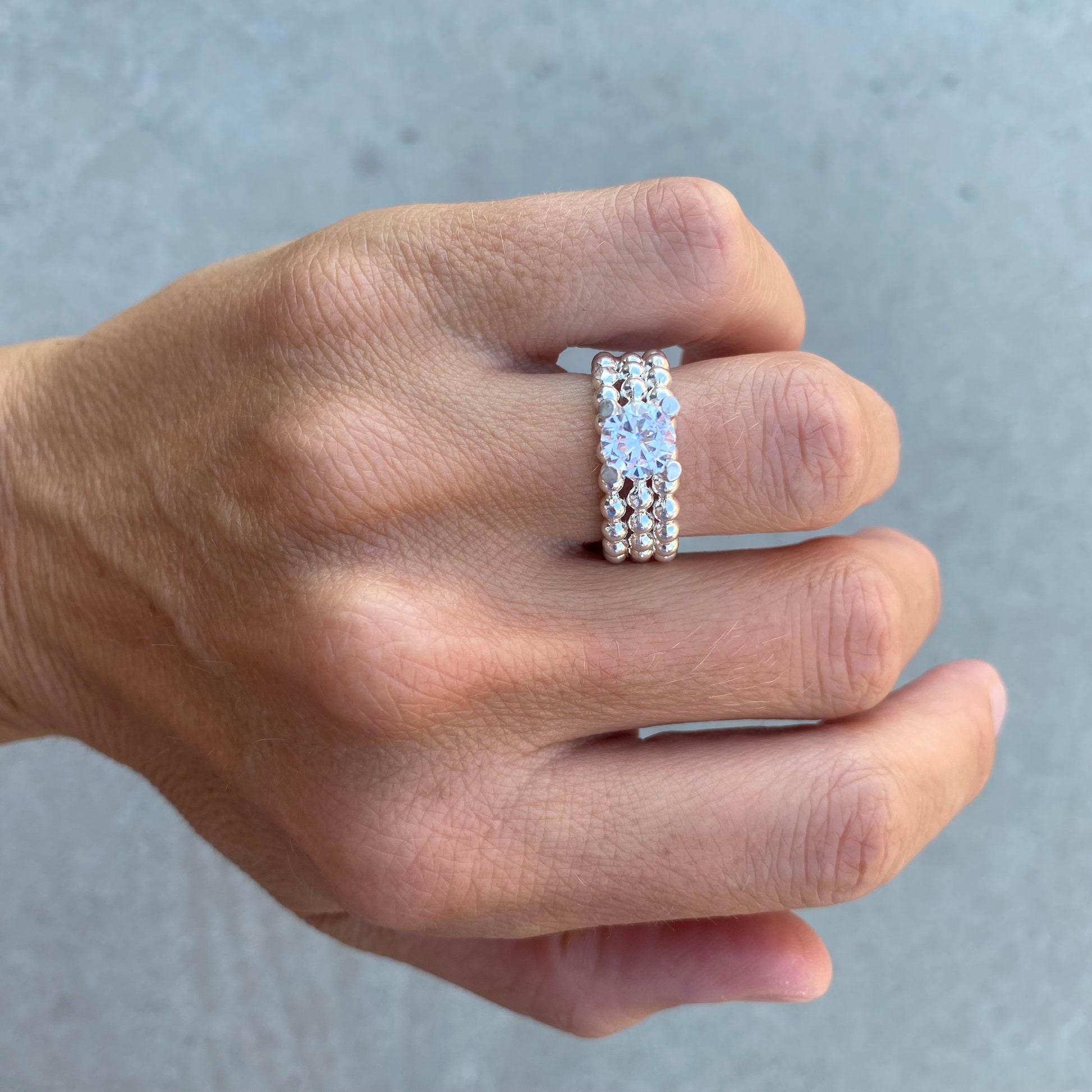 Trippel BOBLE er en kul bred ring. En skikkelig statement ring. På toppen er en 8 mm zirkon.