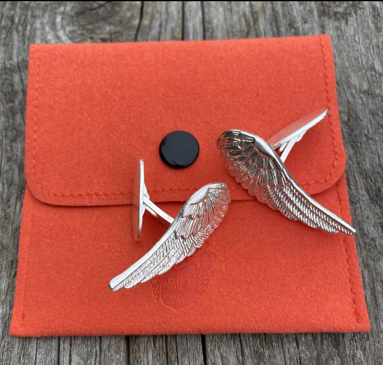 Kule mansjettknapper med vinger. Laget på verkstedet i 925 sølv